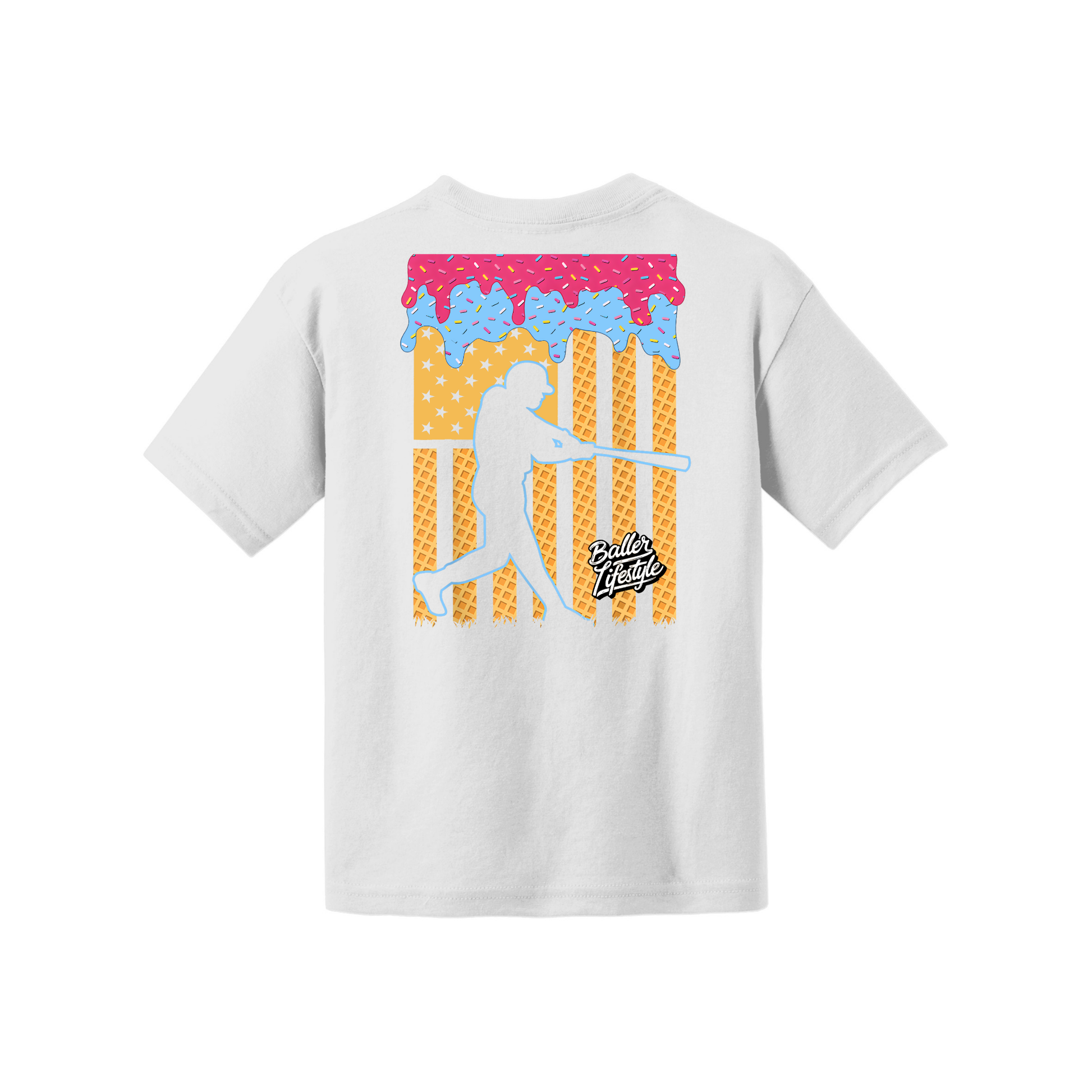 Show off your passion for baseball with our Baseball Drip American Flag youth T-Shirt by Baller Lifestyle. This stylish baseball t-shirt captures the essence of baseball lifestyle off the field.  High-quality and breathable fabric. Ideal for school, game days, vacations and casual days hitting  at the cages. Baller Lifestyle shirts is a must have for any baseball enthusiast with a love for the game.
