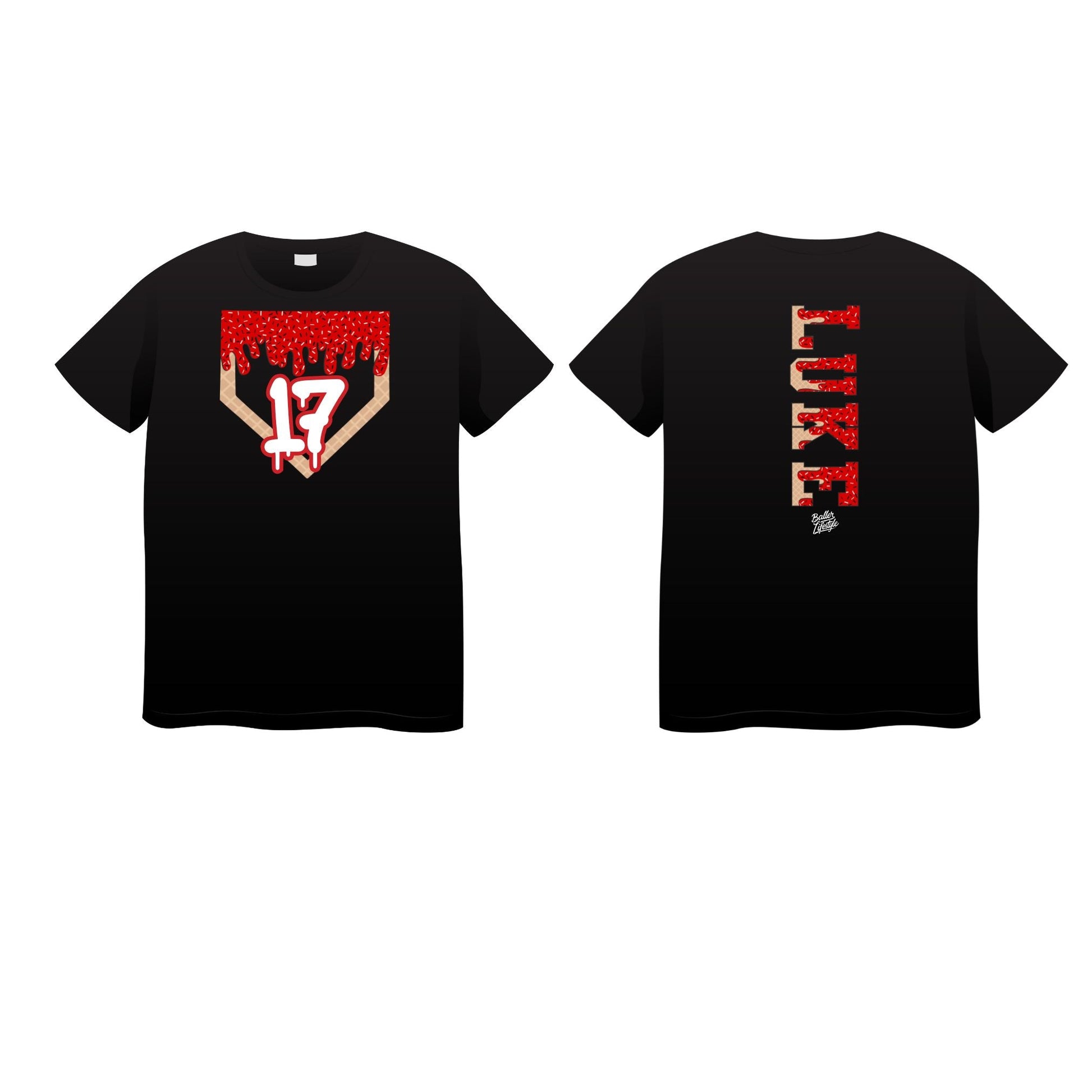 Get ready to hit home runs in style this season with our Custom Baseball Drip Shirt, a fun and fashionable twist on a timeless team classic! This shirt is not just a piece of clothing; it's a celebration of your little slugger's love for the game. Adorned with playful ice cream-style lettering, it features your child’s name and number, making it the perfect addition to their game day ensemble, birthday gifts, or team parties.