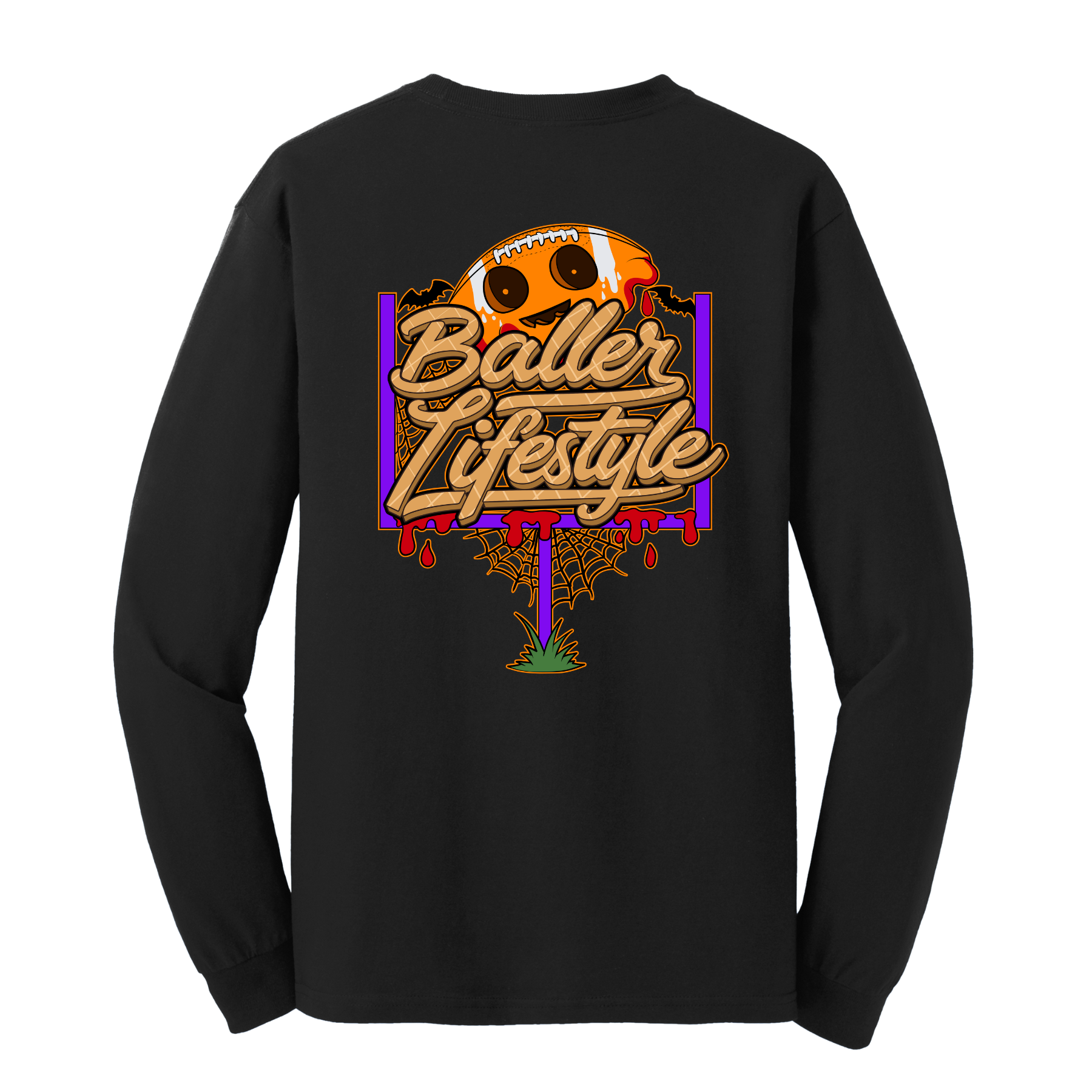 Show off your passion for football with our Halloween Long Sleeve T-Shirt by Baller Lifestyle. This stylish Halloween t-shirt captures the essence of football lifestyle off the field. High-quality and breathable fabric. Ideal for school, game days, vacations and casual days at the field. Baller Lifestyle shirts are a must have for any baseball enthusiast with a love for the game.